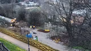 Obras de reparación de una tubería por un desprendimiento de tierra en Etxebarri (Bizkaia) - EUROPA PRESS
