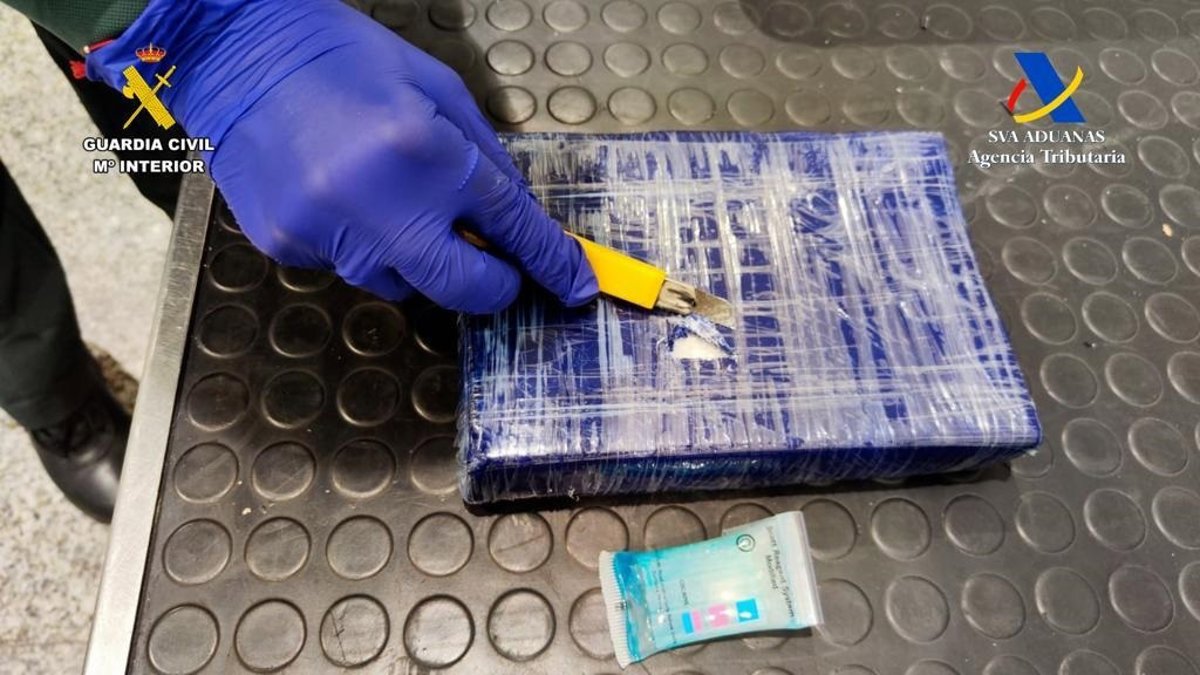 hallaron en su interior cuatro paquetes envueltos en plástico que contenía polvo blanco, que dio resultado positivo en cocaína. El peso de la droga era de un total de 2.680 gramos.