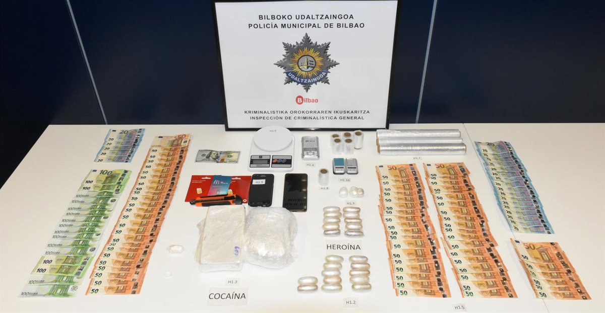 La Policía Municipal de Bilbao ha detenido a un hombre de 63 años, con antecedentes por tráfico de drogas, como presunto autor de un delito contra la salud pública tras observar durante la investigación iniciada en noviembre del pasado año cómo participaba en varios intercambios de droga en Bilbao La Vieja y localizar en su inmueble un kilo de cocaína, 350 gramos de heroína y dinero en efectivo. Además, otro hombre de 71 años está siendo investigado por presuntamente realizar funciones de apoyo y actuar como "mula".