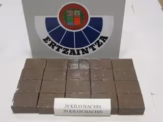 Dos varones de 20 y 29 años de edad han sido detenidos en Ondarroa (Bizkaia), como autores de un presunto delito de tráfico de drogas, después de que en el interior del vehículo en el que viajaban fueran localizados veinte kilos de hachís, según ha informado la Ertzaintza.