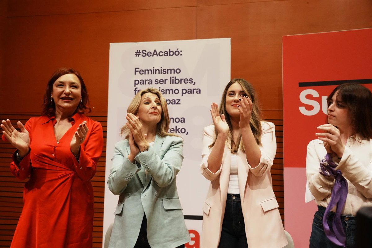 También han intervenido en el evento, titulado 'Ampliando lo público con políticas feministas', la portavoz de Sumar en el Congreso, Aina Vidal; la portavoz de feminismo, igualdad y derechos y libertades LGTBI, Elizabeth Duval; la secretaria de Estado de Derechos Sociales, Rosa Martínez, la eurodiputada María Eugenia Palop, y la candidata de Ezker Anitza-IU al Parlamento Vasco Lorena Vicioso.
