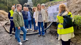 La responsable foral, junto al alcalde de Amurrio, Txerra Molinuevo; los presidentes de las juntas administrativas de Larrimbe y Lezama, María Asunción Aldama y Jon Aingeru Llano; y el presidente de Urbide, Julen Ibarrola, han comprobado sobre el terreno el estado de ejecución de las obras de renovación de las conducciones de Amurrio entre las captaciones del Gorbea y la arqueta del alto de Askargán.