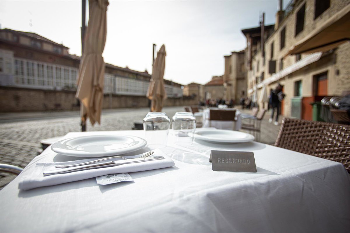 Terrazas vacías en un establecimiento del centro de Vitoria un día después de la petición del Gobierno vasco de la declaración del estado de alarma - Iñaki Berasaluce - Europa Press