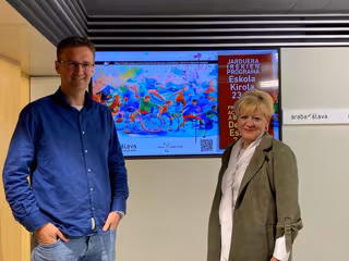 La diputada foral de Cultura y Deporte, Ana del Val, y el técnico del Servicio de Deporte, Joseba Bujanda, han sido los encargados de dar a conocer el nuevo programa que busca "fomentar el compañerismo frente a los resultados competitivos".