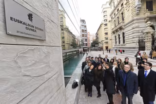 La Diputación de Bizkaia ha colocado una placa con la inscripción 'Euskaldun berria gunea', en la fuente de la Biblioteca foral, para recordar que "el euskera late con más fuerza gracias a las personas que deciden aprender nuestra lengua".