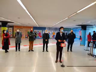 La iniciativa ha sido presentada en un acto que ha tenido lugar en el hall subterráneo de la conexión intermodal de la parada de metro de San Mamés, donde han sido instalados en sus paredes una serie de paneles con ilustraciones que representan las fachadas y escaparates de comercios de distintos gremios, como parte de un decorado que simula una calle cualquiera de un municipio del territorio.