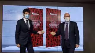 El diputado general de Bizkaia, Unai Rementeria, y el diputado de Hacienda, José María Iruarrizaga, en la presentación de los presupuestos de 2021 - DIPUTACIÓN DE BIZKAIA