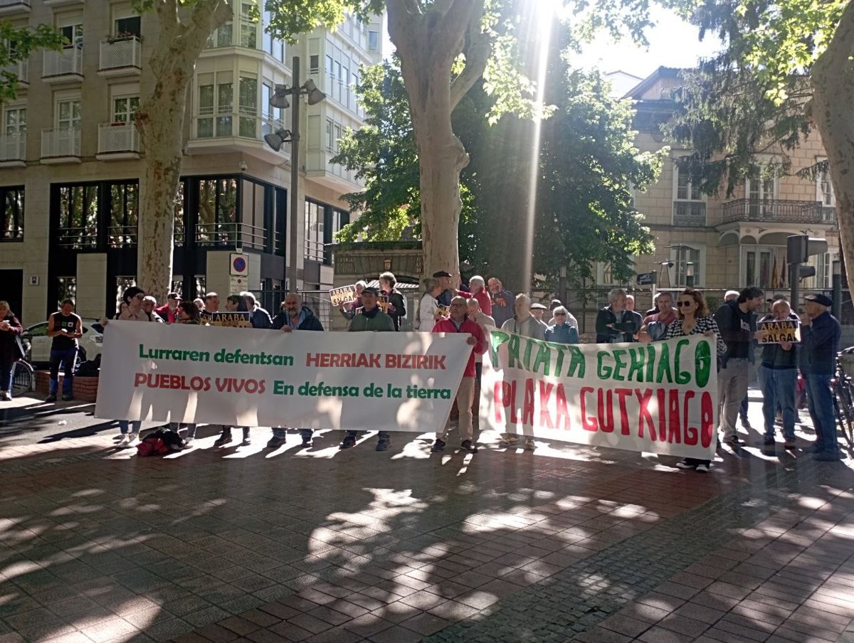 Durante el debate, el sindicato agroganadero alavés Uaga y los colectivos Araba Bizirik y Bionekazaritza se han concentrado en el exterior de la cámara foral para "exigir la paralización de todas las tramitaciones de proyectos de infraestructuras que amenazan el papel vertebrador y central en el equilibrio territorial que debe tener el sector primario".