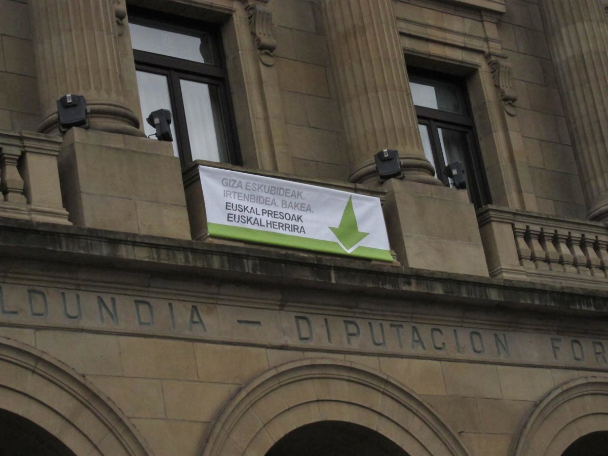 La Diputación de Gipuzkoa ha colocado este mediodía en la fachada del Palacio foral una pancarta en favor de la vuelta de los presos "a Euskal Herria" con el objetivo de que "todo el mundo lo conozca que hoy en día todavía hay cientos de presos políticos vascos a los que se vulneran sus derechos humanos".