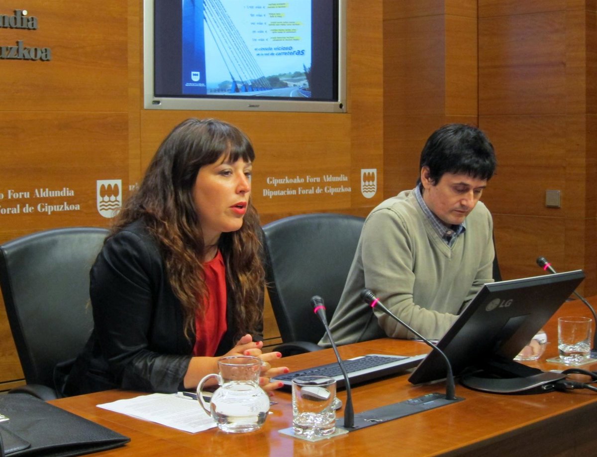 La diputada de Movilidad e Infraestructuras Viarias, Larraitz Ugarte, y el director general de Infraestructuras Viarias, Joseba Altube, han ofrecido una rueda de prensa en San Sebastián para dar a conocer la campaña que ha puesto en marcha la institución foral, con la distribución de 300.000 dípticos, para dar a conocer la situación de las carreteras guipuzcoanas.