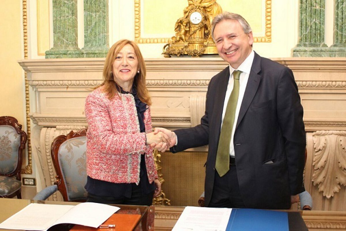 La diputada de Desarrollo Económico y Equilibrio Territorial de la Diputación Foral de Alava, Pilar García de Salazar, y el director de la región norte de Iberdrola Distribución, Jose María Grijalba, han firmado este viernes un convenio de colaboración para la realización de obras de mejora en la infraestructura eléctrica del área rural alavesa.
