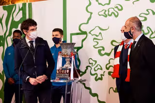"Hoy nos toca ser nuevamente un ejemplo de austeridad y respeto absoluto a la época sanitaria que nos toca vivir. Con una recepción sencilla pero llena de ilusión en nombre de cada uno de los bilbainos, porque esta es la casa de todos. Y hoy nuestro corazón es más rojiblanco que nunca. Esta dosis de entusiasmo que nos habéis dado, se suma a las esperanzas que tenemos puestas en la nueva vacuna para volver a la ansiada normalidad que nos traiga alivio, salud y tranquilidad. El triunfo del Athletic, su garra, nos inyecta optimismo y alegría", ha añadido.