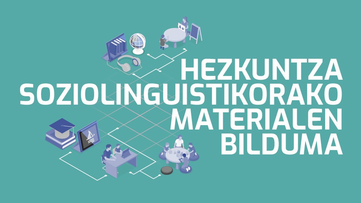 En lo referente a la sociolingüística del euskera, los materiales que utiliza como recurso educativo son "muchos y variados", ya que muchas personas e instituciones han creado textos o publicaciones o realizado conferencias, y cada uno ha dado forma a esos materiales adaptándose a su contexto y a sus necesidades.