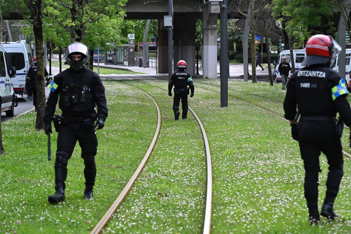 Archivo - Agentes de la Ertzaintza durante un operativo antes del partido del Athletic Club - David de Haro - Europa Press - Archivo