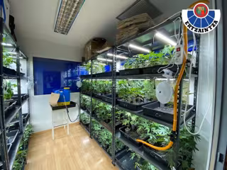 Los integrantes del operativo realizaron una inspección por las diferentes estancias, y hallaron en dos salas de la primera planta sendas plantaciones de marihuana con ejemplares de multitud de variedades en diferentes fases de crecimiento, con focos led de alta potencia colgados del techo y sistemas de ventilación y extracción.
