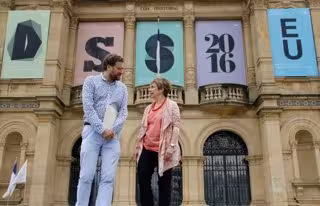 La concejal delegada de San Sebastián 2016, Cultura, Euskera y Educación, Miren Azkarate, y el director de San Sebastián 2016, Pablo Berástegui, han presentado esta campaña que tiene como uno de sus objetivos "dar a conocer a los turistas que se acerquen en verano que la ciudad será Capital Europea de la Cultura" el próximo año.