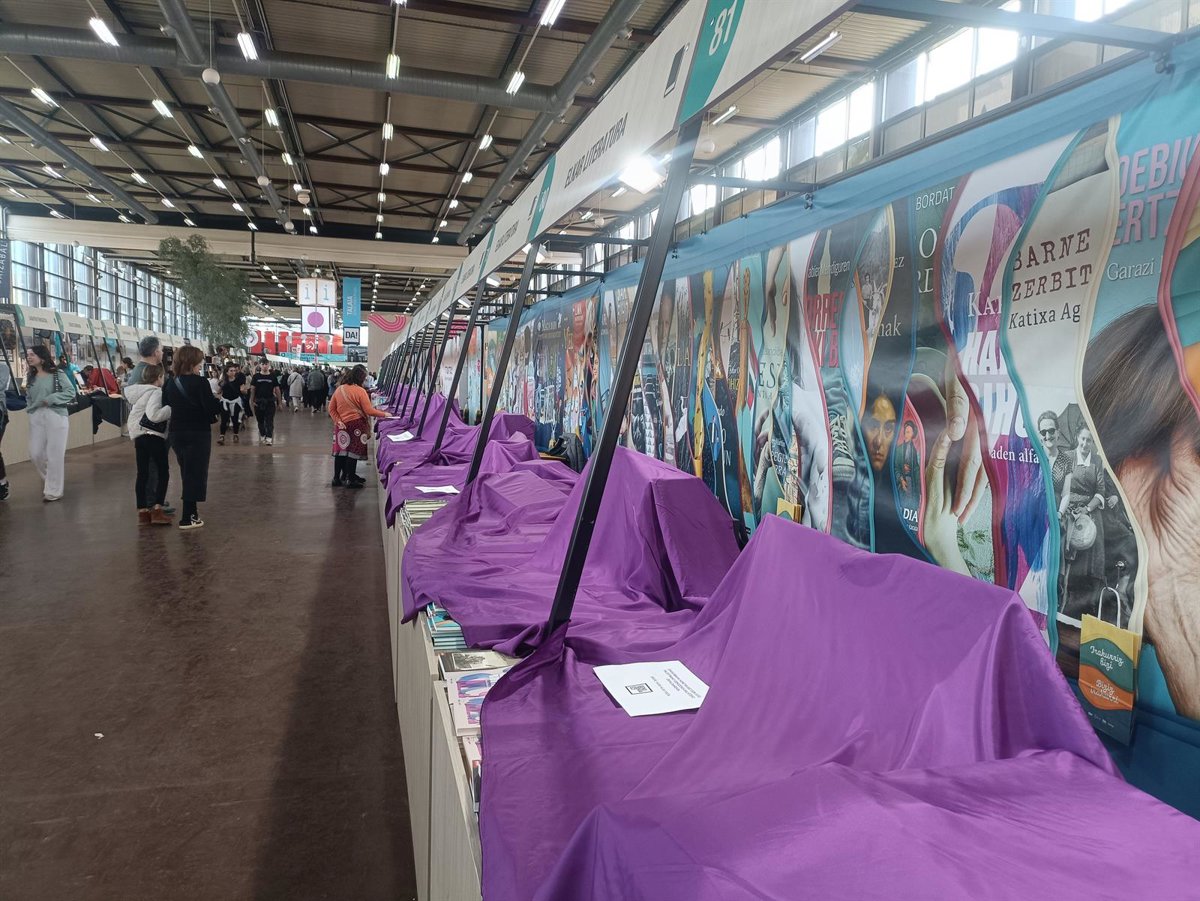 Durante esta media hora de paro en Landako Plaza, muchos de los puestos de Durangoko Azoka han cerrado y no ha habido ni presentaciones de discos o libros ni tampoco actos oficiales.
