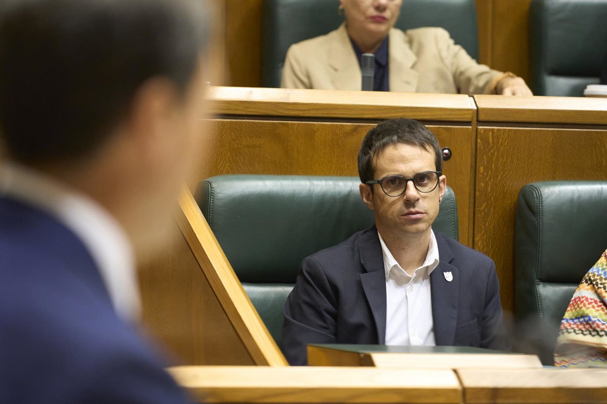 El líder de EH Bildu en el Parlamento Vasco, Pello Otxandiano, durante un pleno en el Parlamento vasco, a 18 de septiembre de 2025, en Vitoria-Gasteiz, Álava - Carlos González