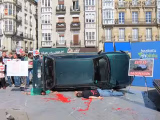 Juaristi ha realizado estas declaraciones en un acto electoral celebrado en la plaza de la Virgen Blanca de Vitoria, donde la coalición ha representado un accidente de tráfico, con un coche volcado y dos cuerpos ensangrentados junto al vehículo, como denuncia de los 16 familiares que han muerto en la carretera durante los viajes que realizan para visitar a los presos que cumplen condena en cárceles fuera de Euskadi.