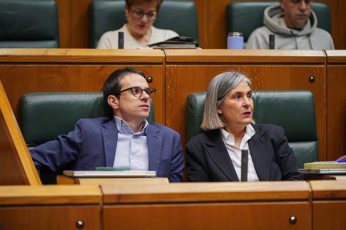 Archivo - El líder de EH Bildu en el Parlamento Vasco, Pello Otxandiano, y la portavoz de EH Bildu en el Parlamento Vasco, Nerea Kortajarena, en el Parlamento vasco - Iñaki Berasaluce - Europa Press - Archivo