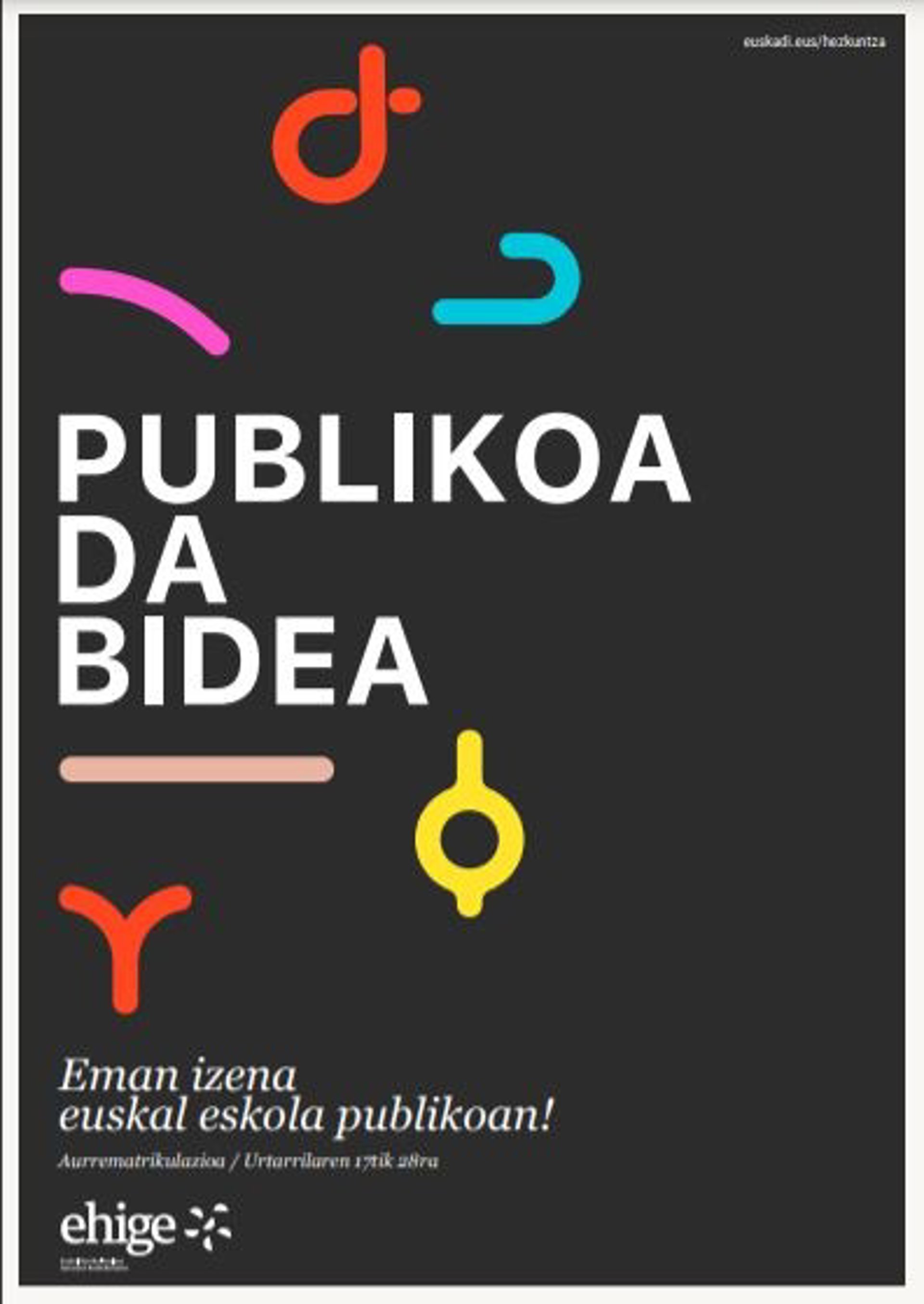 Ehige ha puesto en marcha la iniciativa "Publikoa da bidea" coincidiendo con la campaña de matriculación de la Comunidad Autónoma Vasca, con el objetivo de poner en valor la escuela pública vasca.