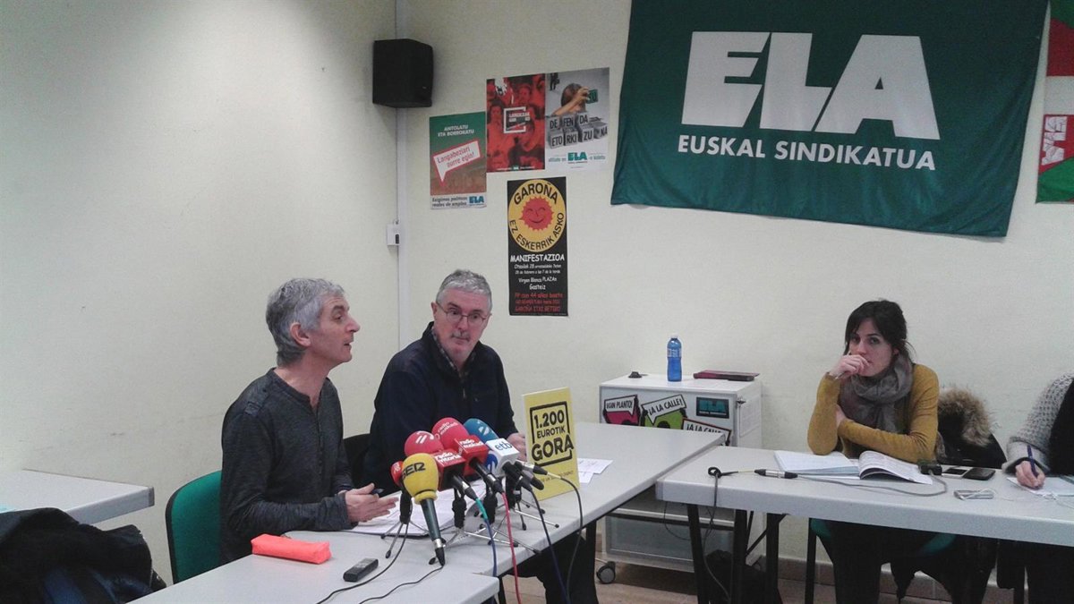 Por otro lado, ELA ha presentado un informe en el que analiza la situación social y económica, del que se desprende que entre el cuarto trimestre de 2007 y el de 2015 se ha reducido la población ocupada --con empleo-- en la Comunidad Autónoma Vasca en 115.000 personas y hay 69.100 más que han engrosado las filas del desempleo. No obstante, ELA destaca que el PIB se ha recuperado ya que el estimado de 2015 es de 878,6 millones de euros, superior al contabilizado en 2007.