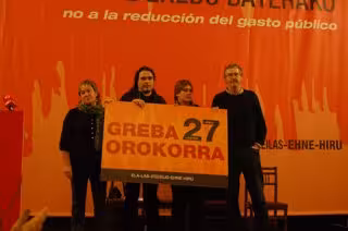 Los sindicatos ELA, LAB, STEE-EILAS, Ehne e Hiru registrarán este martes en Bilbao su convocatoria de huelga general prevista para el 27 de enero para protestar por la reforma de las pensiones.