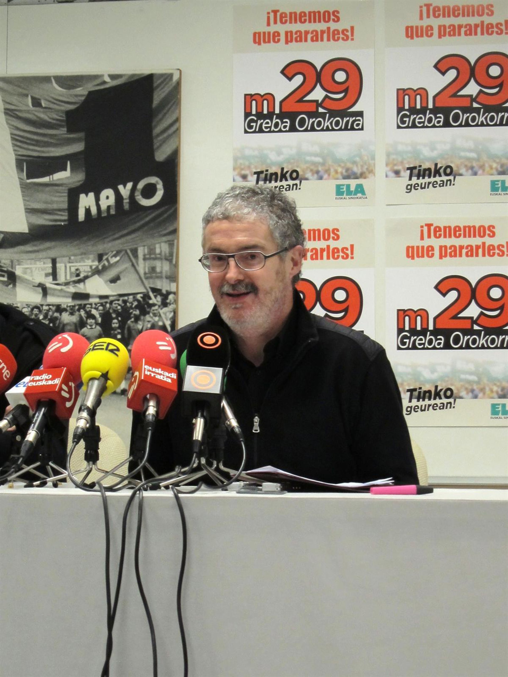 El secretario general de ELA, Adolfo Muñoz, ha pronosticado unos "resultados espectaculares" de la convocatoria de huelga general y ha pronosticado que el 29 de marzo "no termina nada".