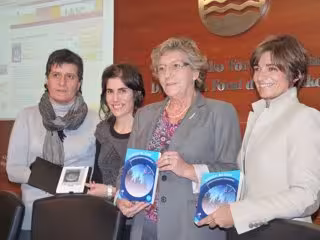 La diputada de Cultura y Euskera, Maria Jesus Aranburu, la directora general de la Fundación Elhuyar, Itziar Nogeras, y la responsable de Ediciones de Elhuyar, Lurdes Ansa, han presentado en rueda de prensa San Sebastián el libro, que ha sido traducido al euskera por Mireia Orbegozo.