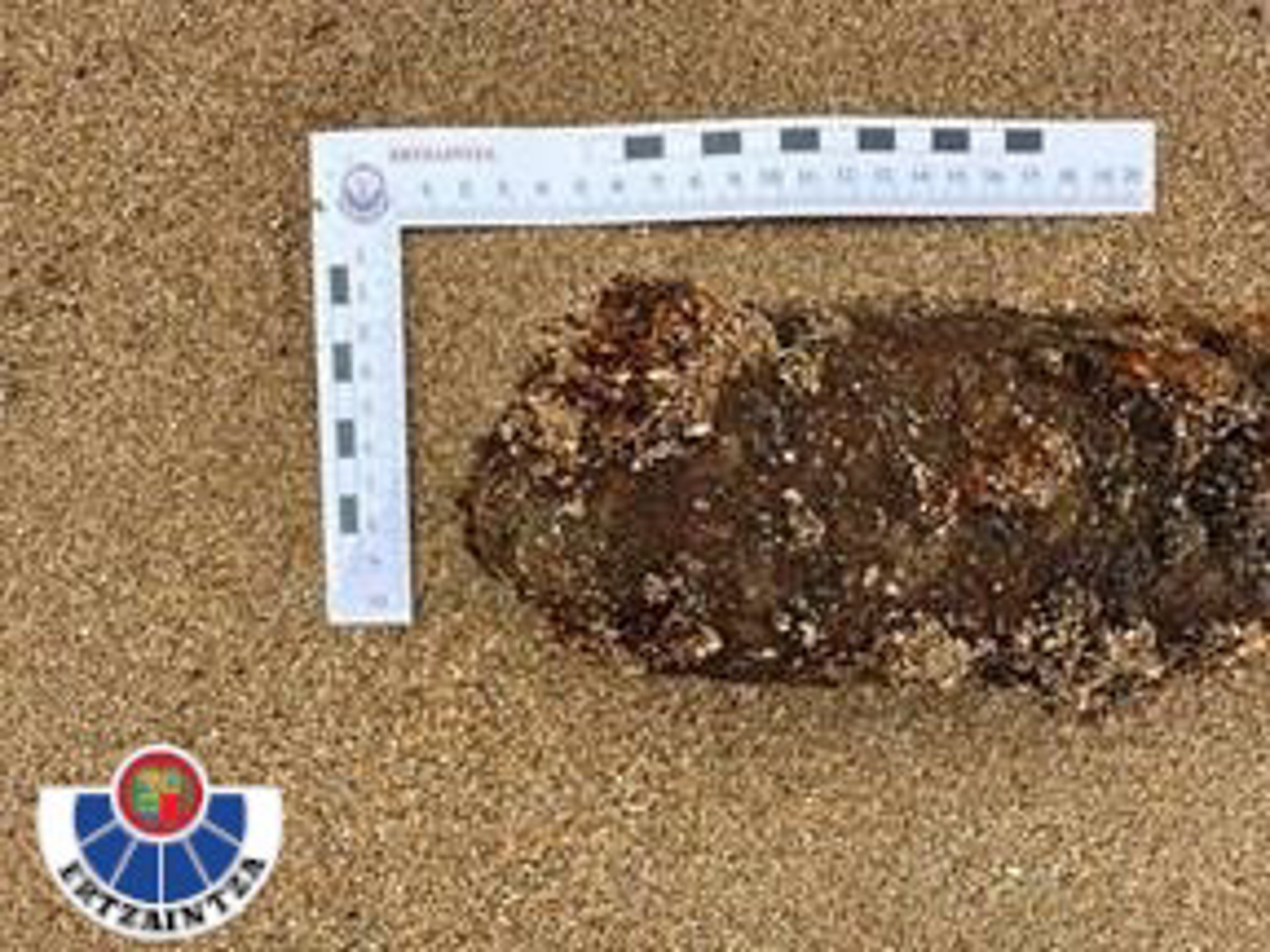 Obús de la Guerra Civil localizado en la playa de Laga, en Ibarrangelu (Bizkaia) - DEP. SEGURIDAD