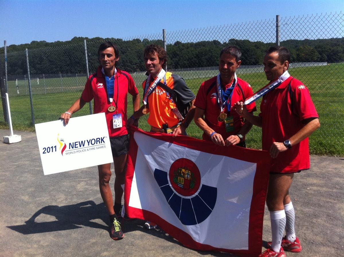 Los siete representantes de la policía autonómica vasca viajaron el pasado 24 de agosto a Nueva York para participar en los Juegos Mundiales de Policías y Bomberos, pero su actuación se pospuso por la llegada del huracán Irene a las costas norteamericanas, lo que obligó a evacuar a los atletas.