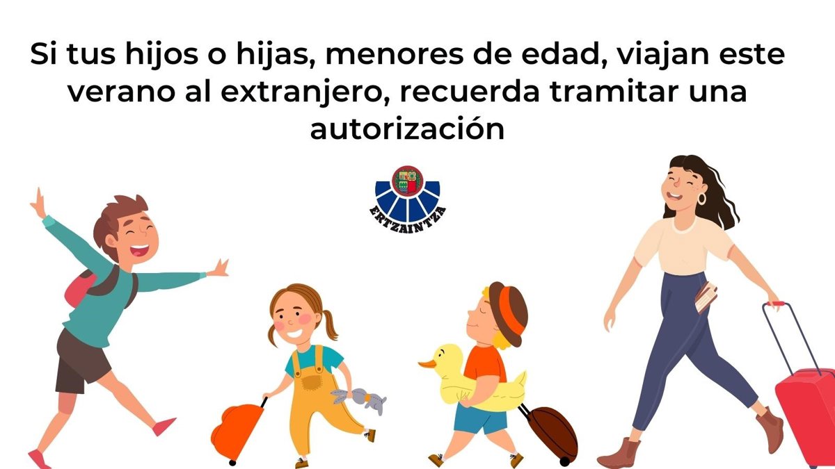 La Ertzaintza ha recordado, ante las próximas vacaciones de verano, que los desplazamientos al extranjero realizados por los menores de edad cuando viajan solos, o acompañados de algún adulto que no ejerza la patria potestad, deben estar avalados por la autorización de las personas que ejerzan legítimamente la patria potestad.