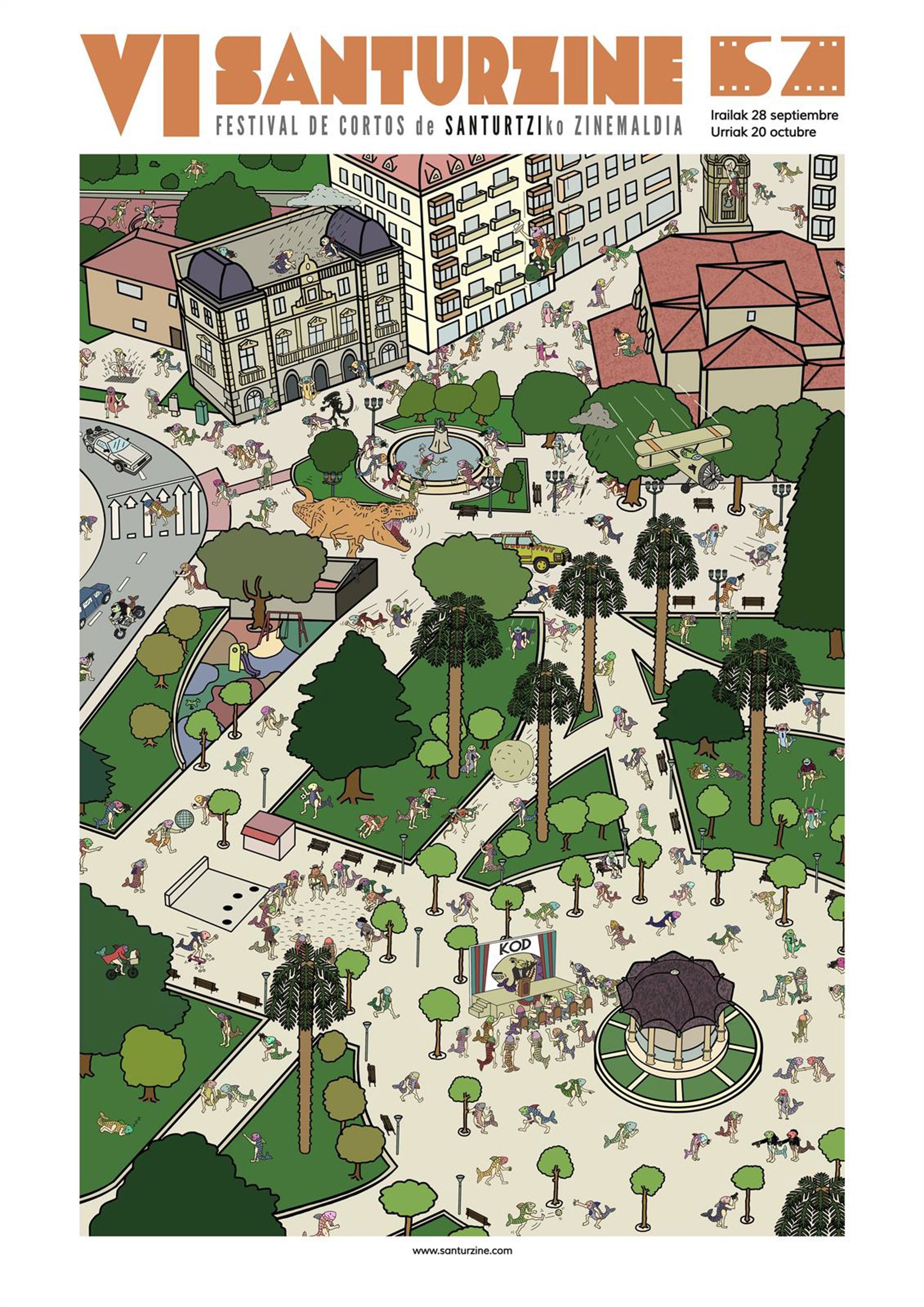 El autor del diseño ganador es el bilbaíno David Sánchez que ha ilustrado el cartel con el icónico Parque de Santurtzi en un estilo 'cartoon' de dibujo animado con santurtziarras con forma de pez con patas, la imagen de Saregabe, la asociación cultural que organiza el Santurzine. En la ilustración están representadas, asimismo, 20 escenas clásicas del séptimo arte, según ha destacado la organización en un comunicado.