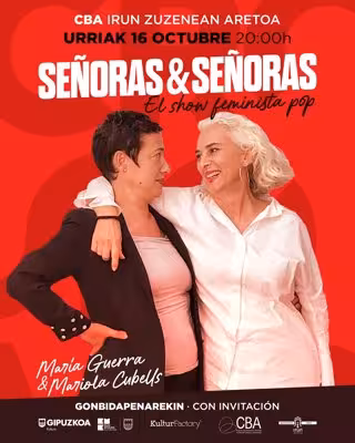 El Departamento de Cultura de la Diputación Foral de Gipuzkoa acercará a Irun, Zumarraga y Eibar, en el marco del festival Crossover, el espectáculo 'Señoras y Señoras', creado por las periodistas Mariola Cubells y María Guerra, que combina humor, reflexión y perspectiva feminista para retratar a una generación pionera de mujeres.