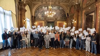 En el acto de entrega de los certificados, la diputada general de Bizkaia ha estado acompañada de la secretaria de Jakiunde, Jakeline Barker, y por el miembro del Museo Bellas Artes, Guillermo Zuaznabar.