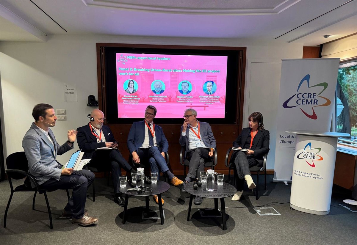 Esther Apraiz intervino concretamente en el panel dedicado al equilibrio territorial y urbano-rural, junto a dos miembros del Parlamento Europeo, Stefano Bonaccini, expresidente de la Región de Emilia-Romaña, y Vladimir Prebilic, antes alcalde del municipio más extenso de Eslovenia, así como al copresidente del CMRE, el alemán Christoph Schnaudigel.