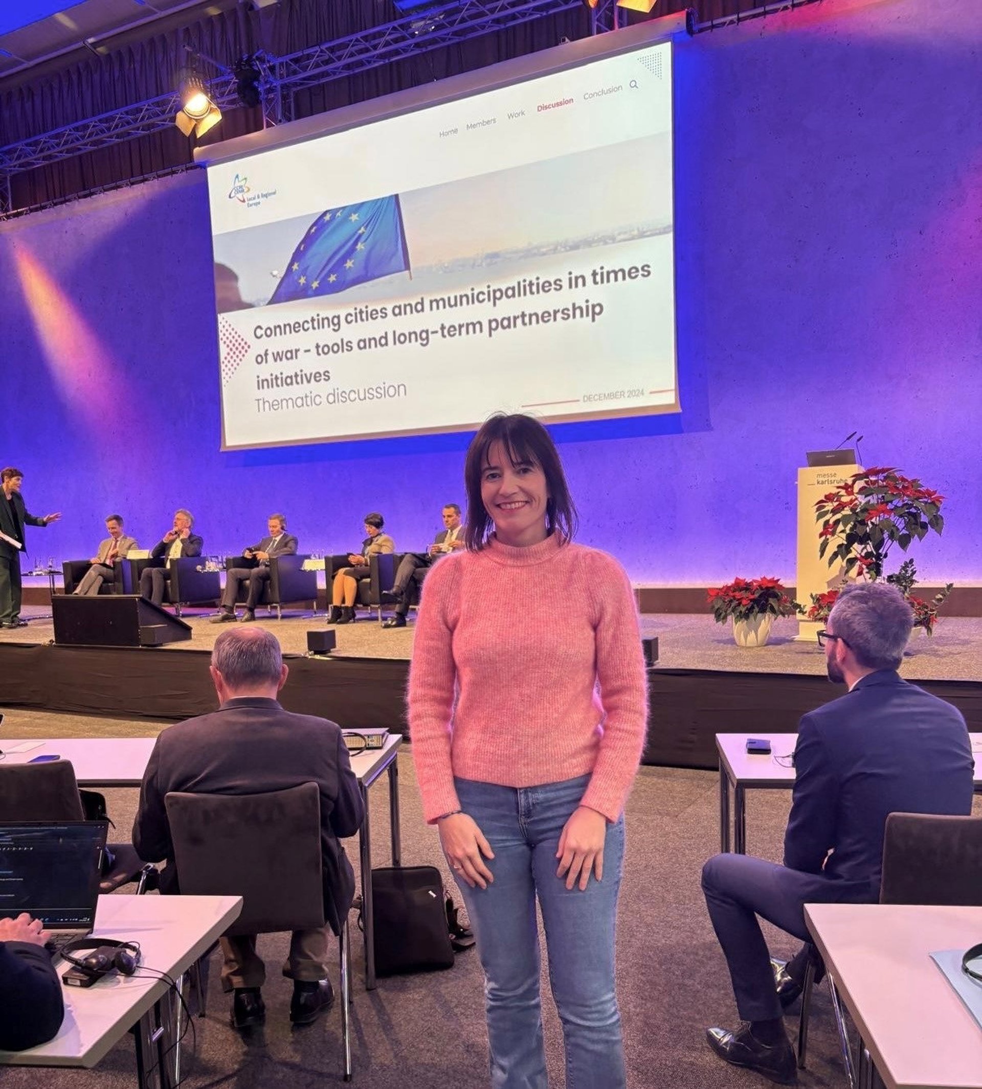 La presidenta de EUDEL, Esther Apraiz, en la la cumbre de líderes locales del CMRE en Karlsruhe (Alemania. - EUDEL