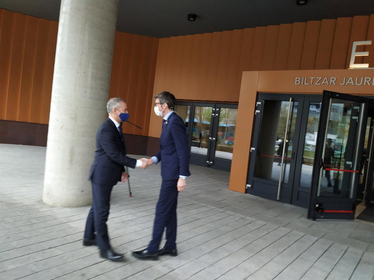 El lehendakari saluda al presidente de Eudel en la entrada del acto del 40 aniversario de la asociación - EUROPA PRESS