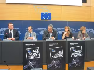 Ambos han comparecido después del encuentro en rueda de prensa con los eurodiputados Francois Alfonsi, Martina Anderson, Tatjana Zdanoka y Mark Demesmaeker, del grupo del Basque Friendship, que defiende que la Unión Europea y la Eurocámara apoyen el proceso de paz y trabajar a favor de la misma en Euskadi.
