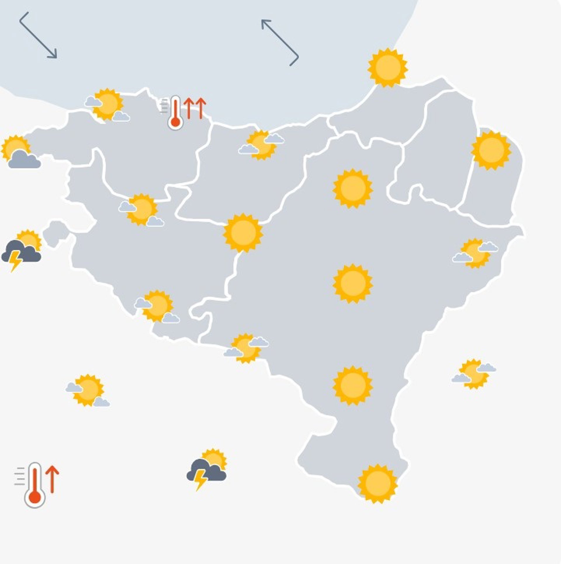 Por la tarde, las temperaturas irán descendiendo a medida que el viento de componente norte vaya entrando del litoral hacia el interior, según las previsiones de Euskalmet.