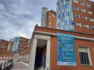Hospital de Cruces (Barakaldo) con cartel alusivo al coronavirus - EUROPA PRESS - Archivo