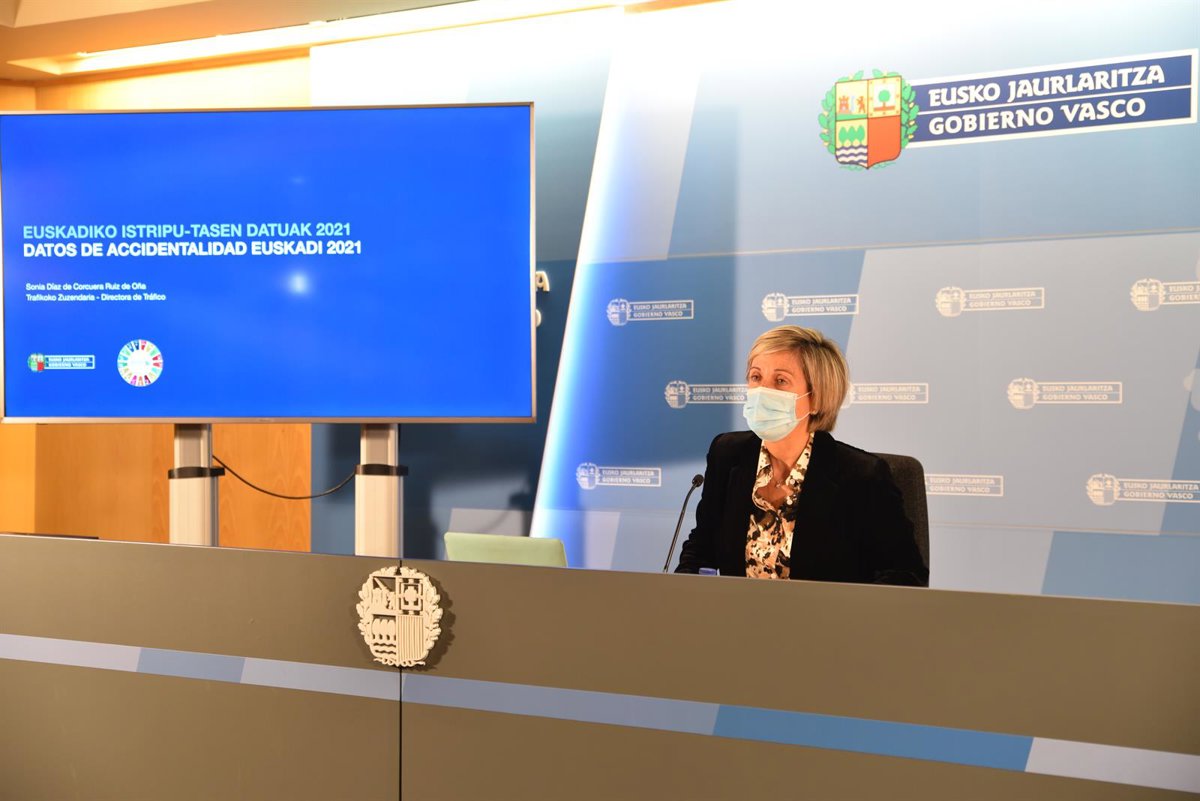 Estos datos han sido dados a conocer este viernes por la directora de Tráfico del Gobierno Vasco, Sonia Díaz de Corcuera, en una comparecencia en el Centro de Coordinación de Tráfico y Gestión de Emergencias de Bilbao para dar cuenta de los datos provisionales de accidentalidad, siniestralidad y movilidad 2021 en Euskadi.