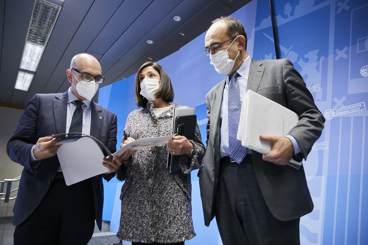 La consejera de Igualdad, Justicia y Políticas Sociales del Gobierno Vasco, Beatriz Artolazabal, ha presentado esta estrategia acompañada del director de Justicia, Eugenio Artetxe, y por el asesor en materia penitenciaria, Jaime Tapia.