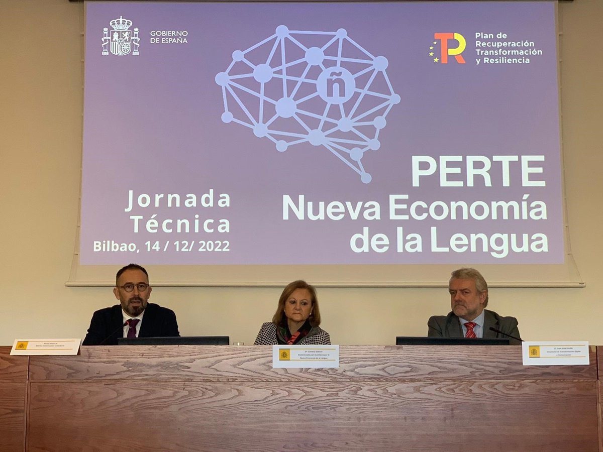 La Comisionada especial para este PERTE, Cristina Gallach, junto al delegado del Gobierno, Denis Itxaso, se han reunido este miércoles en Bilbao con agentes del sector de la lengua (empresas e instituciones) para detallar las ayudas recogidas en este PERTE, cuyo montante total asciende a 1.100 millones de inversión pública estatal, de los que al menos 30 millones se destina en exclusiva a proyectos en las lenguas cooficiales del Estado, euskera, catalán, gallego y valenciano.