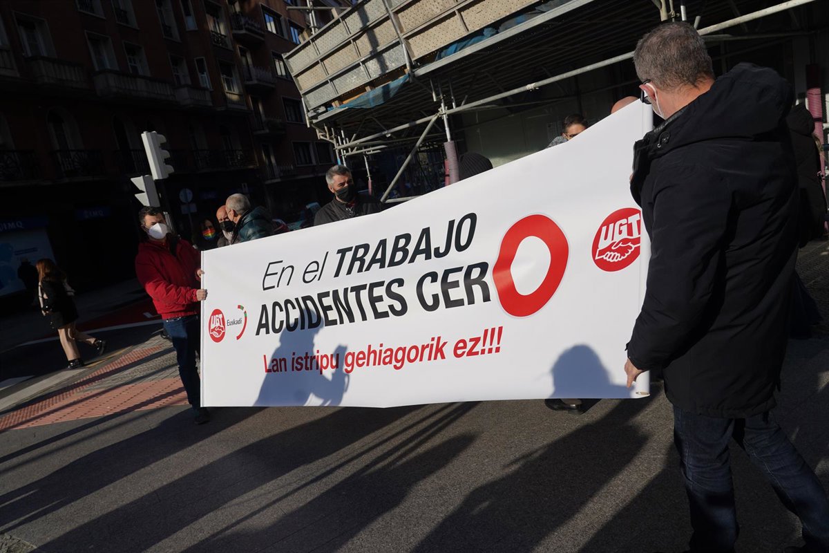 Archivo - Varias personas, con la pancarta que reza 'En el trabajo accidentes cero’, en Bilbao (archivo) - H.Bilbao - Europa Press - Archivo