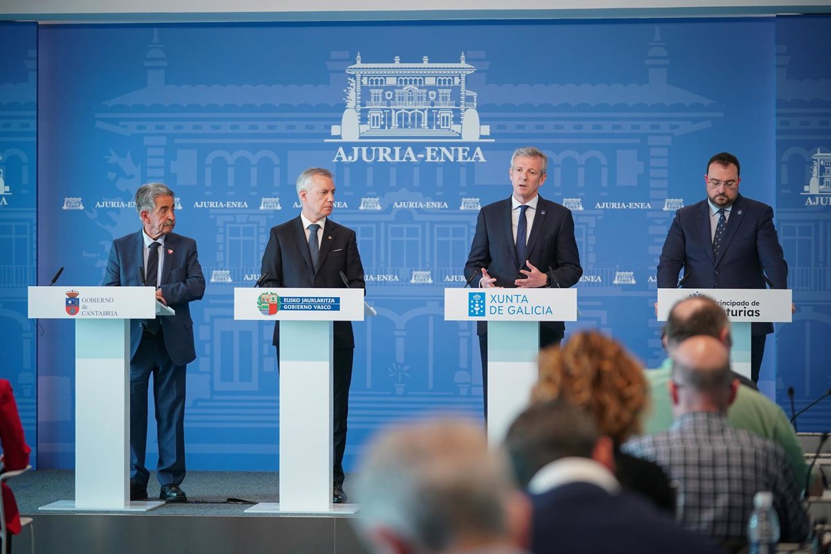 Archivo - (I-D) El presidente de Cantabria, Miguel Ángel Revilla (PRC); el Lehendakari, Iñigo Urkullu; el presidente de la Xunta de Galicia, Alfonso Rueda, y el presidente del Principado de Asturias, Adrián Barbón, durante una rueda de prensa tras una r - Iñaki Berasaluce - Europa Press - Archivo