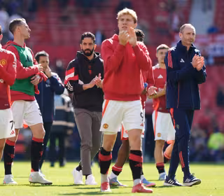 20 April 2025, United Kingdom, Manchester: Manchester United manager Ruben Amorim applauds after the final whistle of the English Premier League soccer match between Manchester United and Wolverhampton Wanderers F.C. at Old Trafford. Photo: Martin Rickett - Martin Rickett/PA Wire/dpa