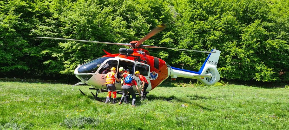 A continuación, los agentes de la Unidad de Vigilancia y Rescate, en colaboración con recursos de bomberos y Cruz Roja, han traslado al herido hasta la aeronave que ha evacuado al deportista herido hasta una zona con helipuerto en el barrio de Arrietaldea de Zegama, punto de encuentro establecido por la organización de la prueba deportiva.
