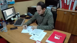 El candidato de Ezker Anitza-IU Unidad Popular al Congreso por Bizkaia, Iñigo Martínez Zatón, ha firmado el Manifiesto de Compromisos de la CREUP (Coordinadora de Representante de Estudiantes de Universidades Públicas), para apostar por "una Universidad pública de calidad para todos".