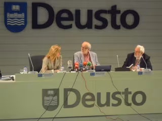 A la presentación han acudido el catedrático de sociología, Javier Elzo, la directora del Instituto Deusto de Drogodependencia Teresa Laespada y el director técnico de la FAD, Eusebio Megías.